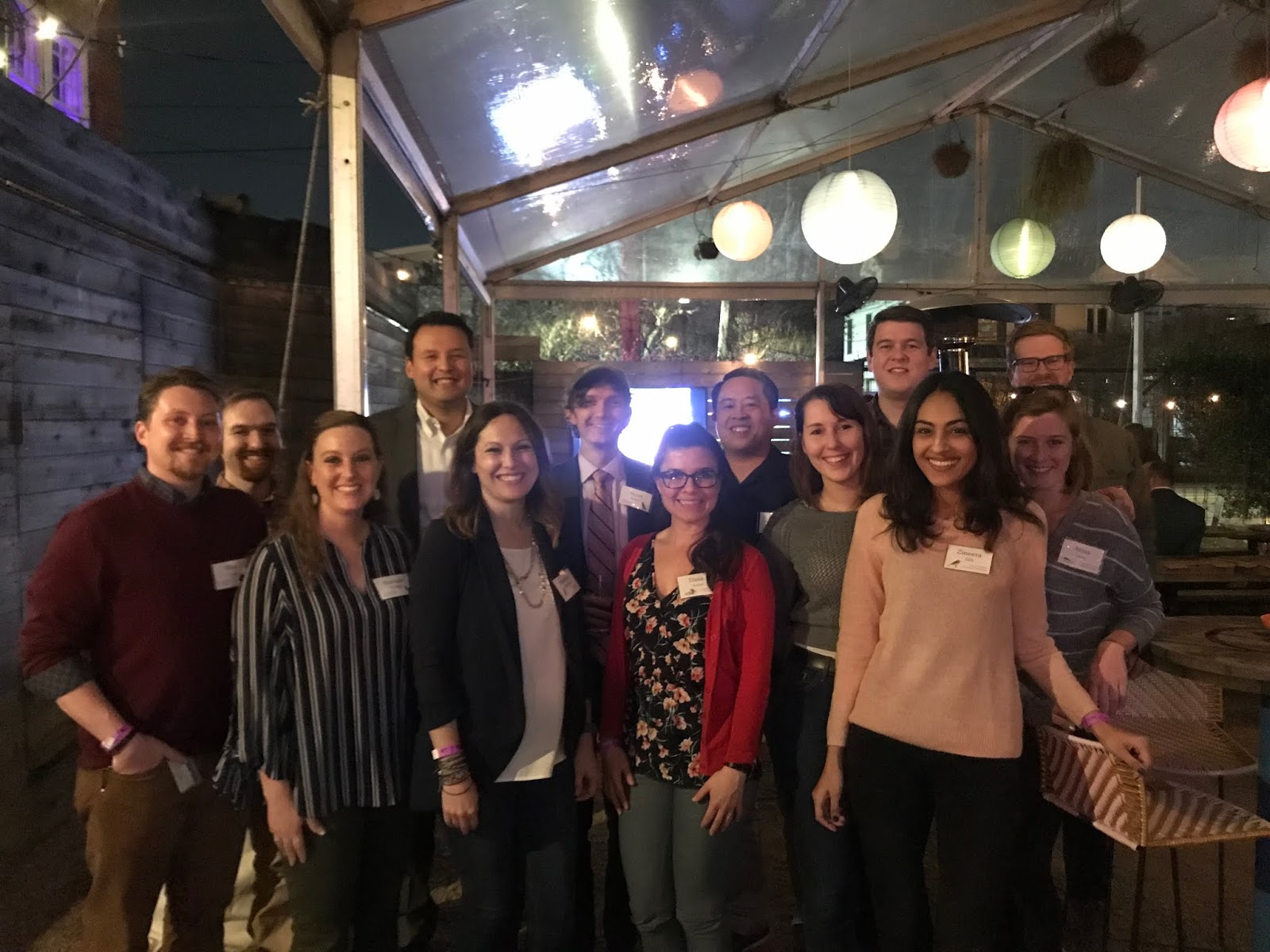 For much of the morning I was in the doldrums – not a chickadee in sight! Then, as if out of nowhere, I heard a cacophony in the trees to my left. Sure enough, a large mixed flock of Yellow-rumped Warblers, Orange-crowned Warblers, Black-capped Chickadees, and Ruby-crowned Kinglets was moving through. All of a sudden, the place was hopping! I knew there was bound to be something special mixed in. Sure enough, as I scanned the foliage in typical twitcher fashion something unusual caught my eye – yellow undertail coverts, pale supercilium, faint streaking on the breast, dull brown crown, and a wagging tail… A Palm Warbler, and a lifer at that! It was a splendid find, and one that I believe was only possible because I was alerted by the presence of a mixed flock.This year, Houston Audubon had a mixed flock of it’s own move through. This one, however, wasn’t composed of birds. Rather, it was made up of fifteen young professionals who together formed the Young Professionals Advisory Council (YPAC). From an associate at a private equity firm to a researcher at Baylor College of Medicine to a natural resources specialist from Houston Arboretum, this group of 20 and 30-somethings contained a rich diversity of interests and skillsets.
