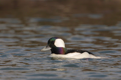 The preferred feeding ground for the Bufflehead is in shallow, open bodies of water, sometimes over submerged mudflats. They dive for, and consume their food underwater. Buffleheads feed on small crustaceans, mollusks, fish eggs, insect larvae and invertebrates such as brine shrimp. In fall and winter, Buffleheads substitute these food items for plant materials, such as pondweed and bullrush seeds.