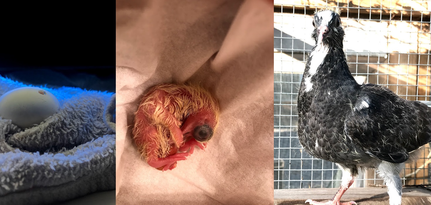 Our newest addition is a very special case. One morning this past May, during morning chores in the homing pigeon coup, we found an egg with a tiny pip in it. The egg was cold and had been abandoned, so we brought it inside, warmed it up, and waited to see what would happen. After six hours, a little pigeon entered the world, and she was named Corona Covid. She has grown up very quickly, thanks to the special care of our staff, and soon she will join our education ambassador team. Corona will help us teach about Passenger Pigeons, and how non-native species end up in new places all around the world.
