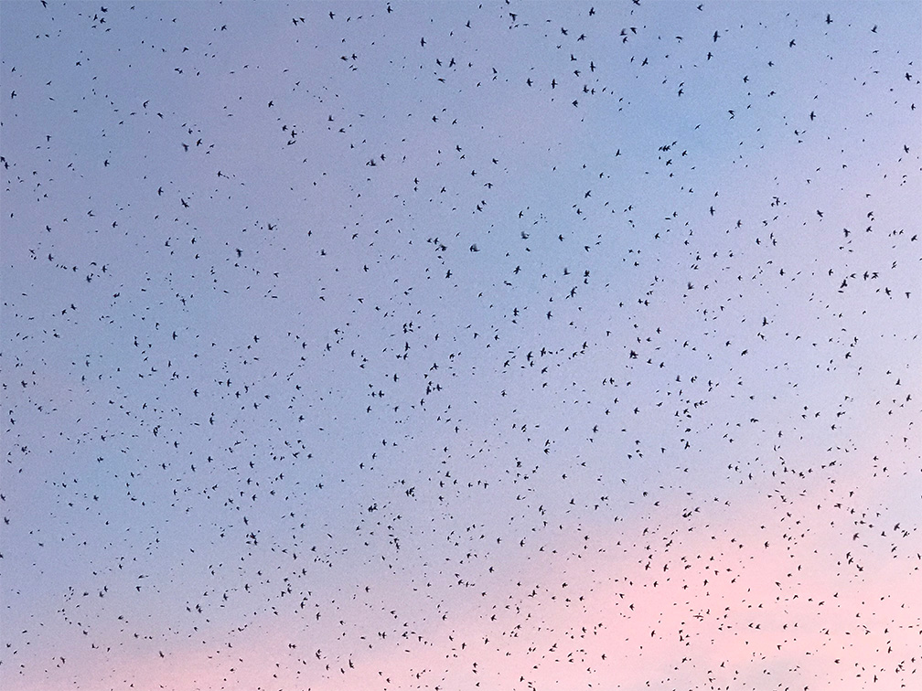 My first experience of this migratory roosting was on the Lake Pontchartrain Causeway in Louisiana many years ago. There were Purple Martins lined up on the bridges and thousands more in the air. But, we do not have to go far to experience this inspiring spectacle of nature. If you are looking for an adventure to break up the cabin fever of our times, I invite you to discover this extraordinary scene by going to the Fountains Shopping Center** (12634 Fountain Lake Circle, Stafford, TX) between the end of July and the end of September for the prime time of Purple Martin migration and staging. (You can also join Houston Audubon and fellow bird-lovers at a socially-distanced Purple Martin Watch Party this summer!)
