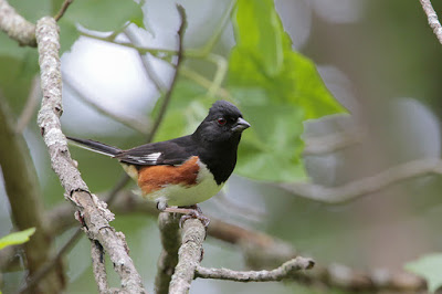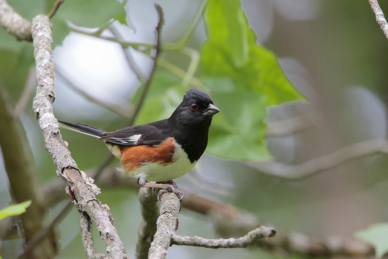 Some believe that this week’s Beak of the Week sounds like it’s singing “drink your tea.” The male Eastern Towhee has a black upper body, wings, rump and tail, two white tail spots, white belly, and rufous flanks. Female Eastern Towhees have brown upper bodies, rumps, wings, and tails instead of black ones, and lack tail spots.