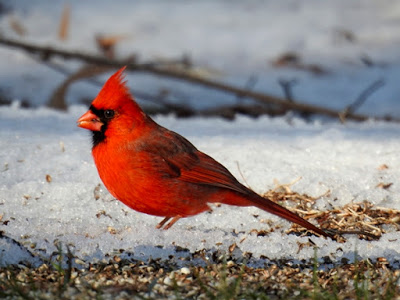 On Sunday, I scattered a bunch of black oil sunflower seeds and mixed seeds on the ground and restocked all the feeders. I refilled the feeders twice daily through Thursday and checked in periodically to remove any ice buildup from the intermittent snow and rain. On Monday morning, I noticed the water in the birdbath was frozen, so I chiseled some of the ice off and poured in hot water. I also left out a bucket of hot water, which immediately drew in tons of birds who sat around the steaming water like it was a campfire. The hot water would quickly freeze over so I continued to refresh it twice daily as well.