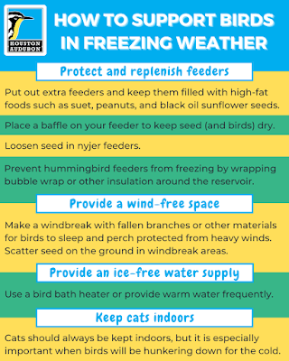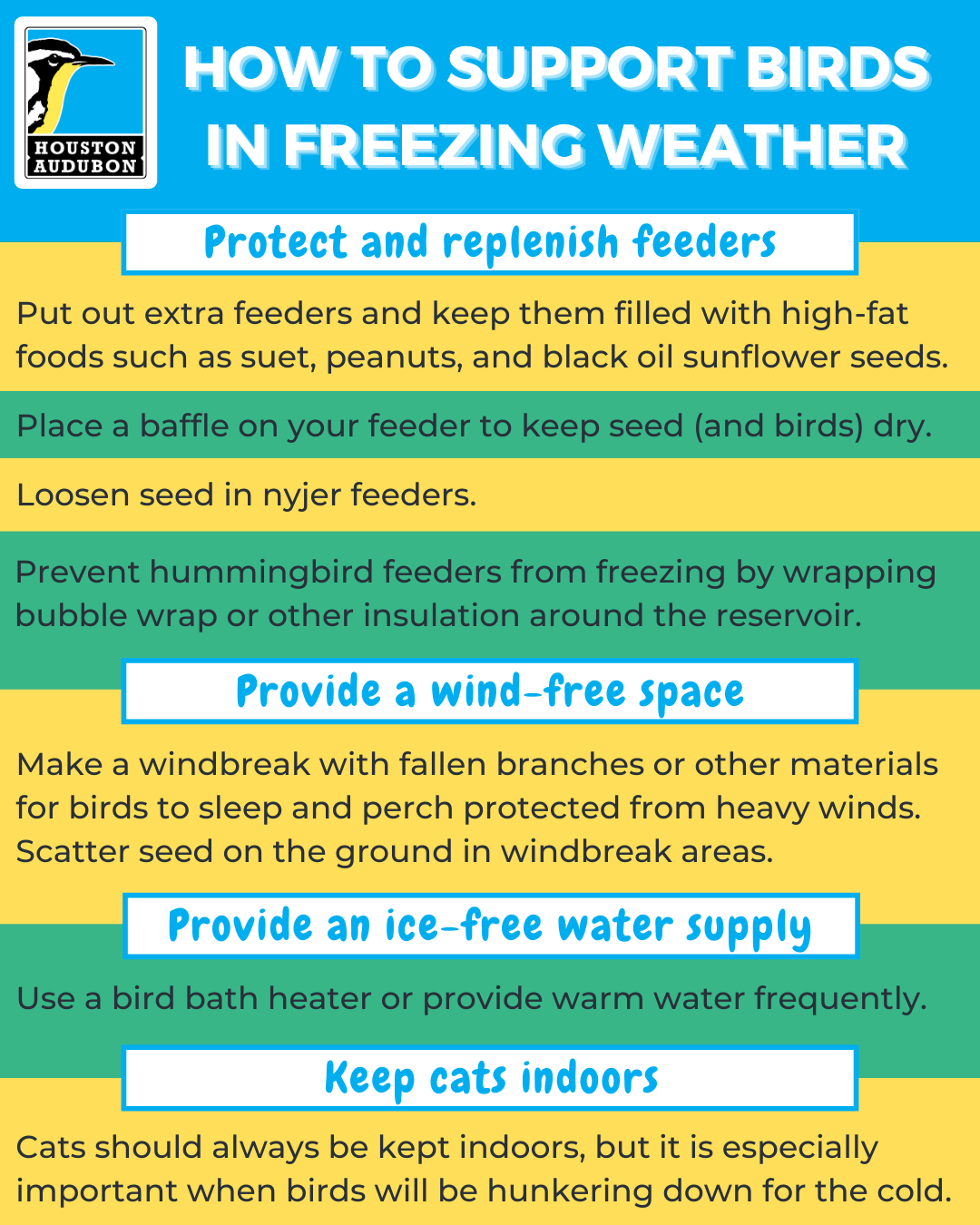 On Saturday, I saw a post on Houston Audubon\’s Instagram about how to help birds during the impending winter storm, and decided to take some extra precautions. My backyard shares a fence with a golf course that provides lots of tree cover for the birds already. The back corner of the yard has some bushes and native plants, and provides a nice natural windbreak.
