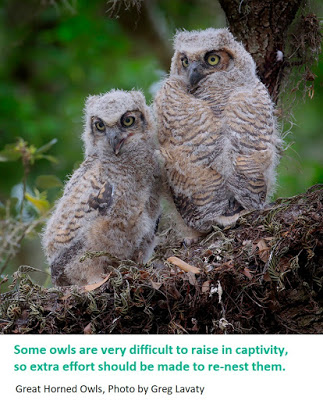 If you have a bird that is visibly injured, or the parents have not been seen for several hours, or the nest site is completely destroyed or cannot be located, only then should you resort to taking the birds into human care.
