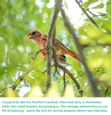 2.) Determine the age of the bird. You can search for pictures on the internet for the following keywords: hatchling, nestling, fledgling.