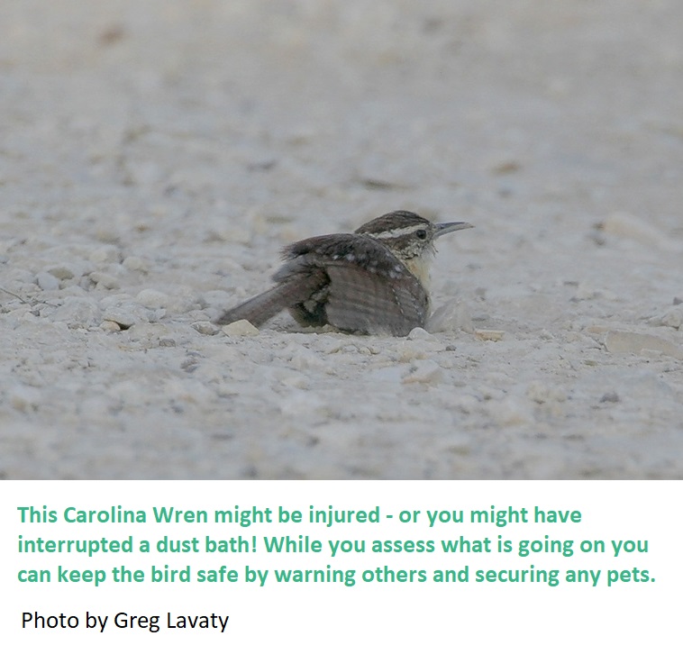 1.) Is the bird in immediate danger? Is it in a dog’s mouth or being stalked by a cat? Is it in the street or parking lot? Is it in the path of yard work happening right now that can’t be stopped?
