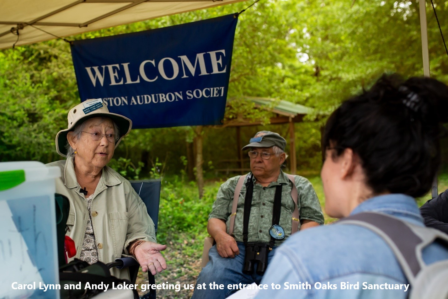 We were welcomed to the sanctuary by Carol Lynn and Andy Loker, Smith Oaks’ unofficial gatekeepers. We spent nearly two hours discussing their 35 years of service to Houston Audubon, including their time spent at Smith Oaks. Carol Lynn regaled us with stories of her childhood and encounters with birding royalty like Ted Parker, Roger Tory Peterson, and of course her father, George Lowery. She impressed upon us the destruction of the natural world she’s seen, including the impacts on birds and other wildlife. It was readily apparent that Carol Lynn was also the gatekeeper to our entire journey.