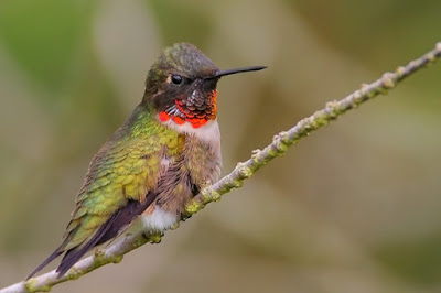 Did you know that Ruby-throated Hummingbirds are able to fly in all 6 directions with wing beats of 53 times per a second? Ruby-throated Hummingbirds are bright emerald or golden-green on the back and crown with gray-white underparts. Males have a brilliant iridescent red throat while females and immatures have fine, dark throat streaking.
