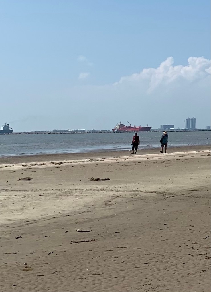 The morning started out sunny but relatively cool after tropical storm Nicholas on Tuesday. Volunteers at first observed that the beach didn’t look as bad as it had at past beach cleanups, but assumed this was because much of the litter blew into the grassy dunes. Upon closer inspection there was indeed quite a lot of refuse, and a surprising variety of items. This year, we saw something that hadn’t been a common sight in previous year’s cleanups, which was a large amount of both cloth and disposable face masks.