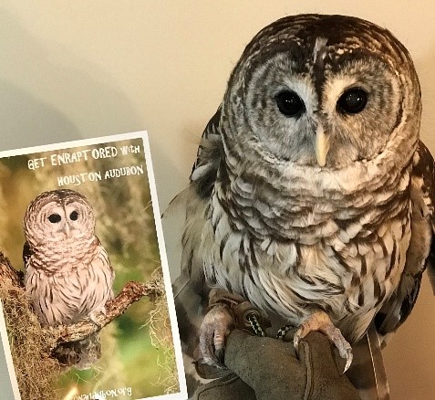 Percy the Eastern Screech-Owl helped inspire a love for birds for more than 13 years! He hatched in the wild in 2008 but was found illegally shot by a pellet gun in Bear Creek Park as a newly fledged juvenile. He was rescued, but the damage done to one of his wings and one of his eyes was beyond repair. He was transferred to Houston Audubon in 2008 and quickly became a most loved owl at programs and owl prowls. Percy was named after the screech owl that accompanied Percy Weasley in the Harry Potter series. Percy was a hit at many Harry Potter events over the years and dozens of owl prowls at both the Edith L. Moore Nature Sanctuary and the Raptor Center. Percy was cute but tough and tenacious and a favorite amongst summer campers.