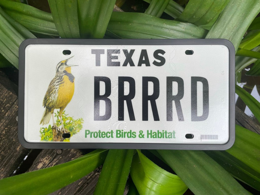 “I have always been a fan of specialty plates and sported several over the years to support a mission I believe in, add a subtle aesthetic to my car, or create a clever message with a few select characters. So when I saw the announcement of a Houston Audubon license plate and opportunity to cover all three bases I ordered one immediately! BRRRD ;)”