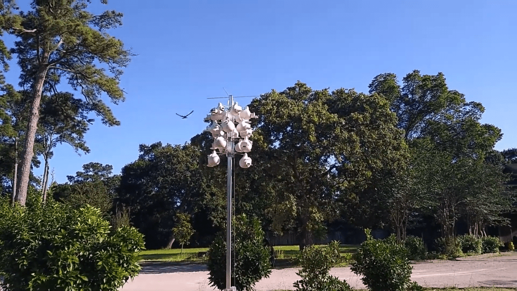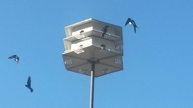 - Spring 2015-2017: we put up a metal hexagon two-story Purple Martin house