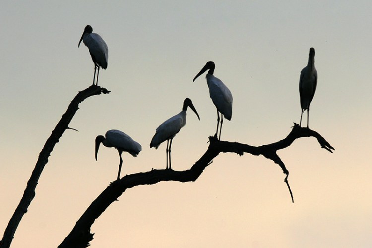 Wood Storks are uncommon in the United States with a breeding population on the coasts of Florida, Georgia, and South Carolina. Since they are only found in a small area of the country, Wood Storks are listed as threatened in the United States, but the IUCN rates the species status worldwide as least concern.