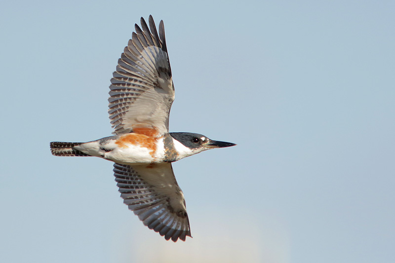 Belted Kingfishers can often be seen foraging along water bodies throughout North America. They are resident in the the continental United States, expanding their range into Canada in the summer to breed. They are also known to winter in Mexico and Central America, where they overlap with the more southerly Green and Ringed Kingfishers.