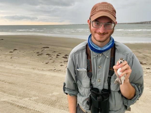 If you’ve visited any of the High Island Sanctuaries or Bolivar Flats in the past year, you may have run across our Coastal Sanctuaries Conservation Specialist, Wyatt Egelhoff. Wyatt started working for Houston Audubon as a Conservation Technician in December 2021 and then transitioned to doing beach-nesting bird stewardship in March 2022. He was hired as a full-time member of the Houston Audubon team in August 2022. His day-to-day tasks range from species monitoring, habitat restoration, visitor services, and educational outreach. Prior to Houston Audubon, Wyatt found work monitoring arctic-breeding shorebirds in both Alaska and Chukotka, surveying grassland birds in the breeding and non-breeding season throughout the Southern Great Plains, and as an agronomist at a premier golf course in the desert southwest. A birder from a young age, Wyatt is always excited to share timely bird sightings and expertise with visitors to our Coastal Sanctuaries!