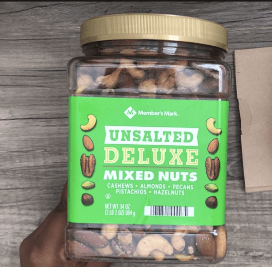 I’m using a pre-made unsalted nut mix from my local grocery store. If you don’t have a pre-made nut mixture, you can make your own with unsalted nuts and dried fruit, as well as oats. When preparing the combination, aim for 80% nuts, 10% oats, and 10% dried fruit.