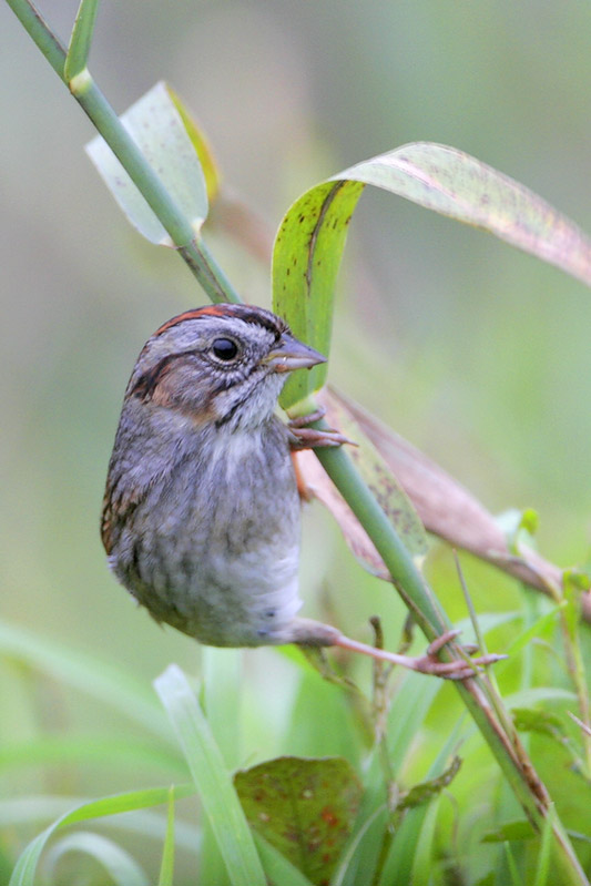Very aptly named, Swamp Sparrows breed in a variety of wetland habitats, including cattail marshes, boreal bogs, and wet meadows. Their breeding range extends from boreal wetlands in Canada south to brackish marshes of the mid-Atlantic United States. During the winter, they migrate south, and can be found in wetlands as far south as central Mexico. Though they are common in their preferred habitat, they can be rather shy, and often are sooner heard than seen; listen for a rich, high-pitched “chip” or “pip” call or, during the breeding season, a slow trill sung by males from atop a perch.