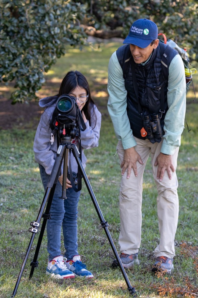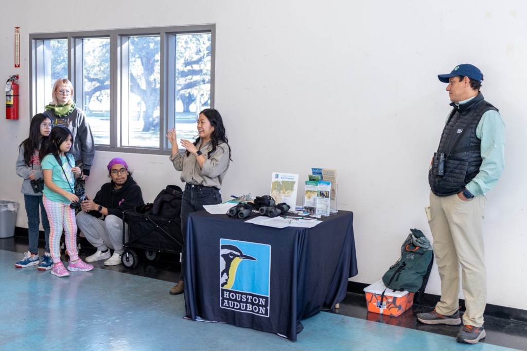 We enjoy routinely holding nature-based programs with Madres del Parque, a dedicated group of mothers supporting and enhancing the community around Burnett Bayland Park. Last December, we were excited to host a Christmas Bird Count (CBC) at the park in collaboration with Madres del Parque, The Nature Conservancy, Harris County Precinct 4, and Latino Outdoors. CBC is the nation’s longest-running community science project that the National Audubon Society started in 1900. Counts are conducted every year and data is used in analyses, peer-reviewed publications, government reports, and annual summaries for the CBC. We counted ten species of urban birds and were lucky enough to observe a Cooper’s hawk with its prey for over 20 minutes through a spotting scope. The hawk and an American goldfinch were two valuable contributions to the overall Buffalo Bayou CBC South-Southeast Area trip report.