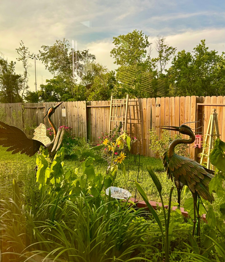 Determined to fill our space with trees, plants, and flowers, we found a class entitled “Backyard Wildlife Habitat Certification” and that is where we started. Our first step was acknowledging the challenges and determining solutions for our space. Clay soil? Yes, we have that. Shade and sunny spots? Another challenge to think about. Water in the spring and then not so much in the summer for months on end? Another hurdle to overcome. Once those elements were evaluated and determined for our space, we introduced native Houston plant species to our yard, and WOW, our space took off. First came the green anoles, then the butterflies, and, of course, the birds!