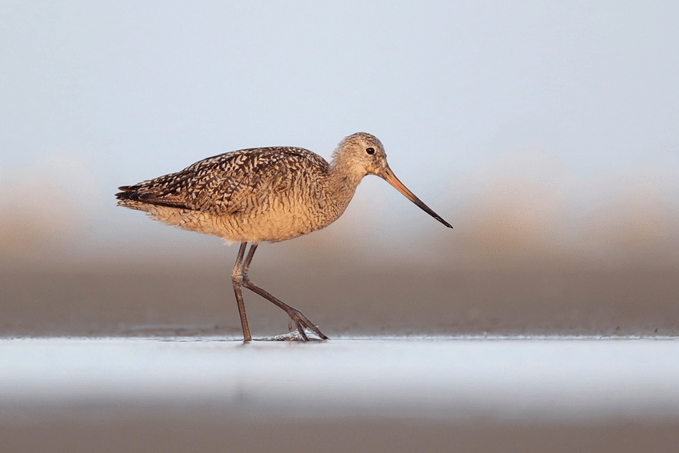In the winter, Marbled Godwits can be found foraging along coastal mudflats throughout the United States coasts. One of their important wintering sites is Bolivar Flats Shorebird Sanctuary, which is a very reliable place to spot them. Habitat loss is the primary contributor of species population declines across the world, and it affects Marbled Godwits too. They have lost a lot of their breeding habitat due to agricultural development, and much of their wintering habitat due to coastal development, leading to them being classified as vulnerable by the IUCN. This is one of the many reasons Bolivar Flats is so special and why protecting this habitat is crucial for these birds!